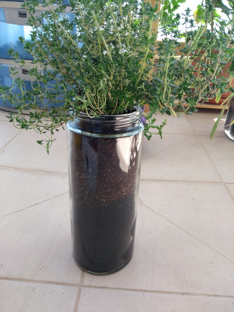 אחרי ארבע חודשים שהלימונית גדלה בכיף בצנצנת זכוכית על בסיס תחתון של ביופחם שמקבעת 400 גרם של פחמן (פחמן מהווה 80% מתכולת הביופחם), שהיה מיועד להפוך לפחמן דו חמצני באטמוספירה בתהליך שריפת פסולת חקלאית – החלטתי להוסיף לו חברים חדשים. צנצנת קורנית השפים (טימין) שמקבעת גם 400 גרם פחמן, וצנצנת אורגנות שמקבעת 600 גרם פחמן.