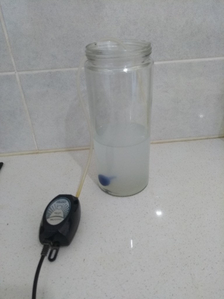 אפשרות שנייה להאצת התהליך הוא להזרים אוויר עם משאבת אוויר אל תוך התמיסה כדי להאיץ את היווצרות חומצה פחמתית.