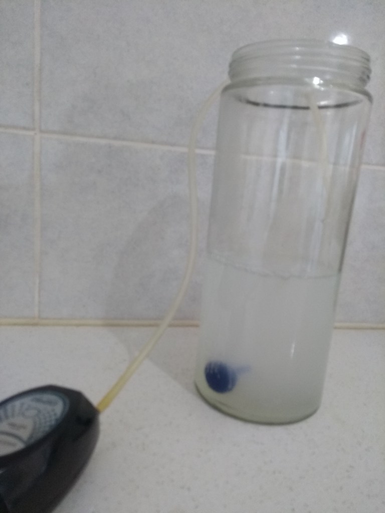 החלטתי לחזור על הניסוי הראשוני שלי כדי להבין האם אפשר לשפר את הרעיון של העברת בועות אוויר דרך תמיסת הידרוקסיד כדי לקבע את הפחמן דו חמצני אבל הפעם לנסות להעביר את האוויר דרך מצע כלשהוא שיעודד את היווצרות הקרבונט, אז עשיתי כמה ניסויים :