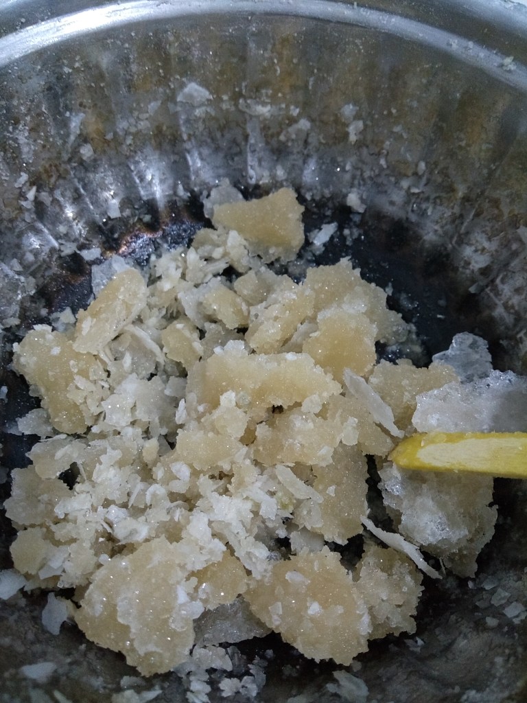 חודשים לאחר מכן, כל התמיסה הפכה לנתרן פחמתי לאחר שפחמן דו חמצני מהאטמוספירה הגיב עם התמיסה, וזאת התוצאה אחרי שגירדתי ושברתי את הגושים הגדולים :