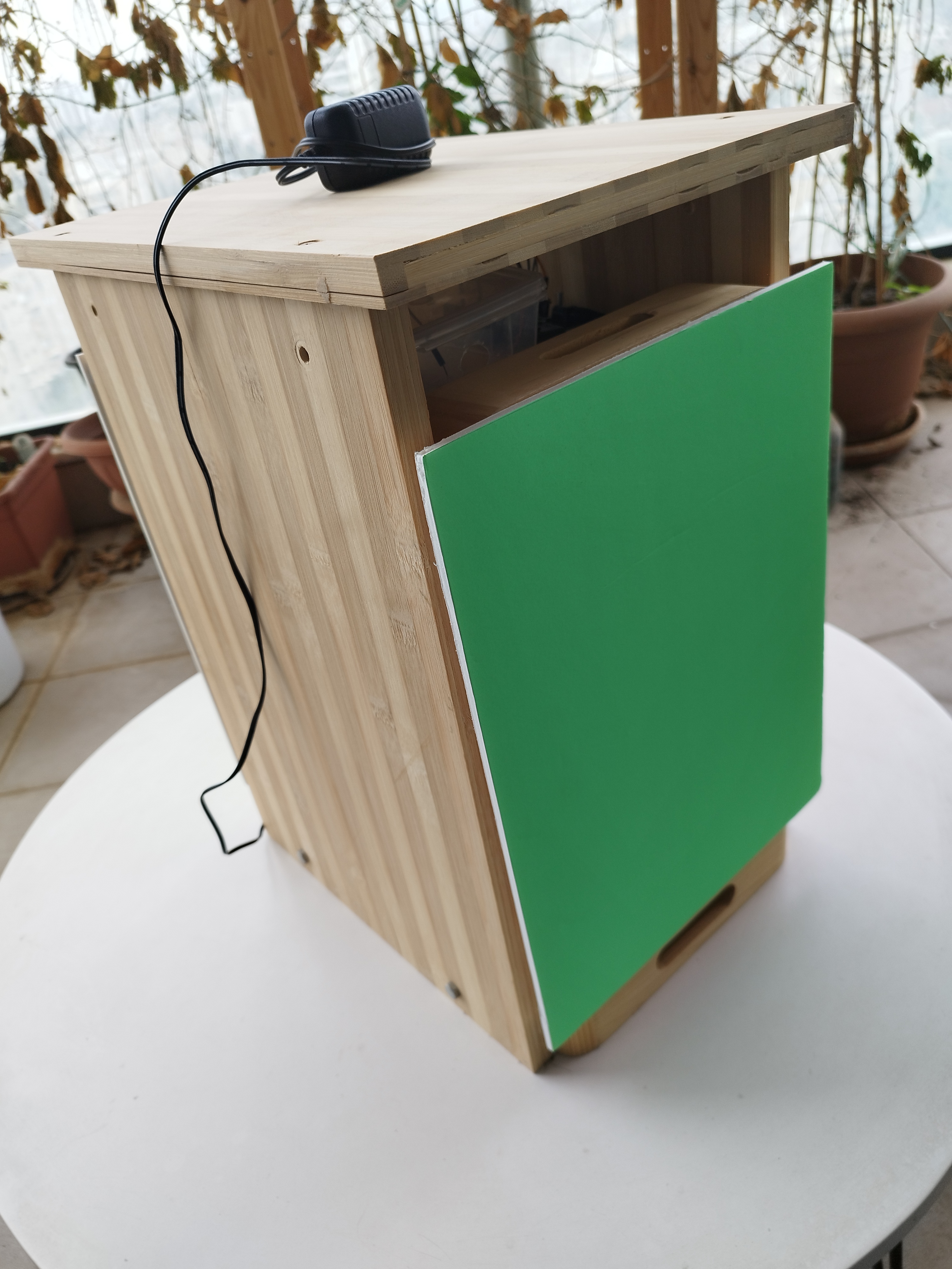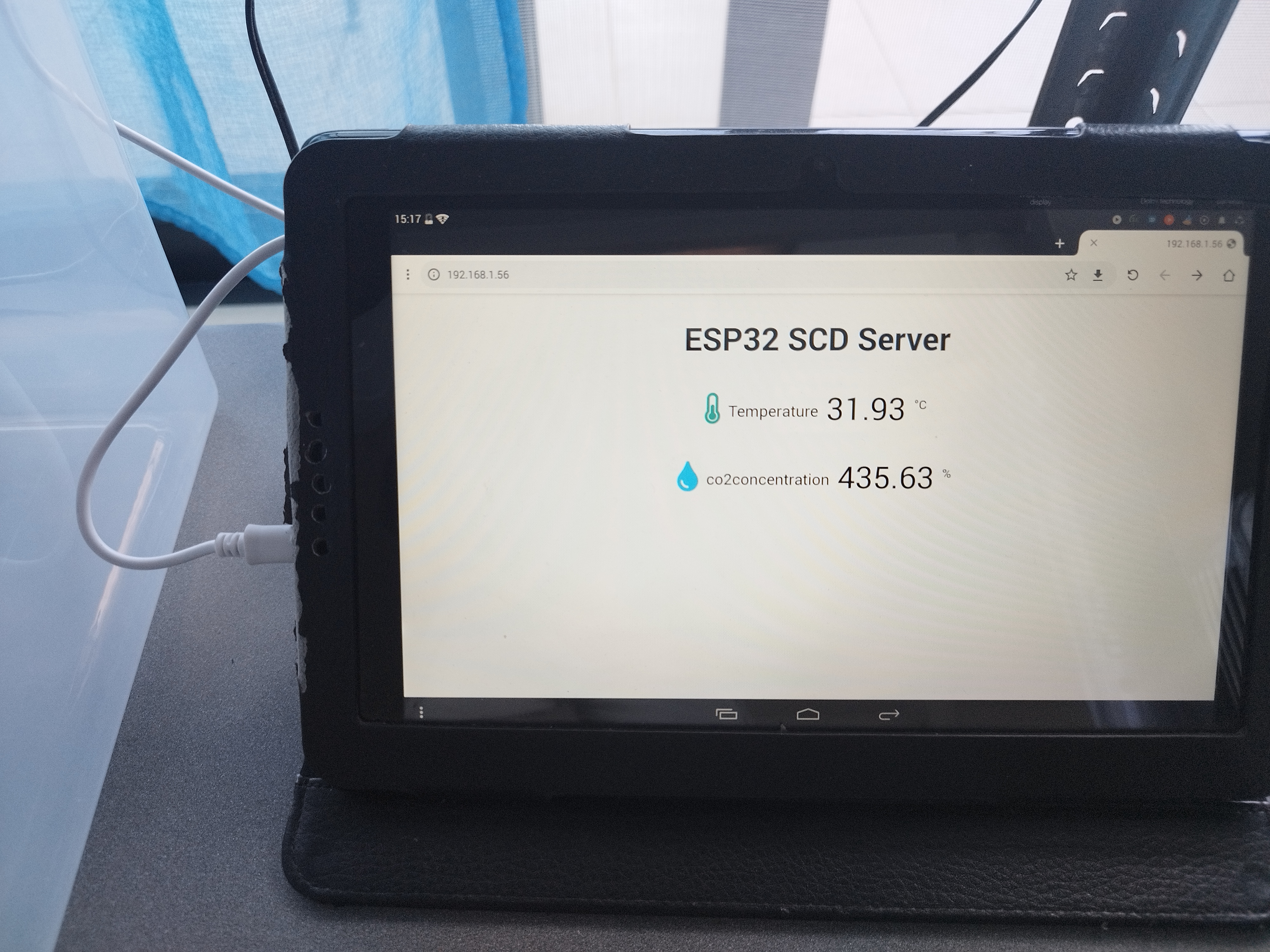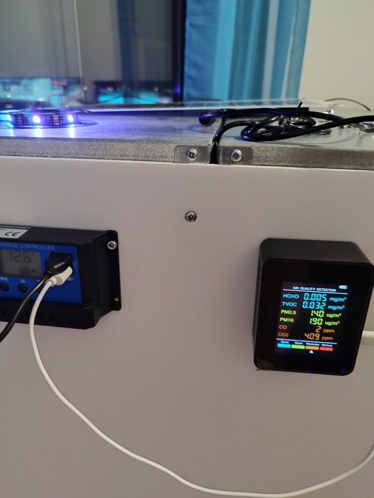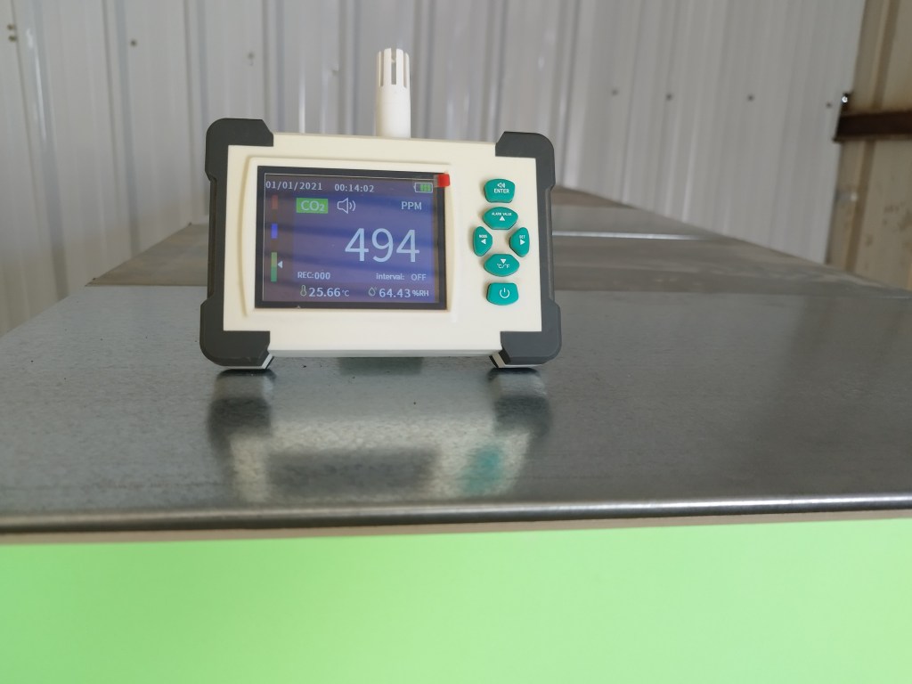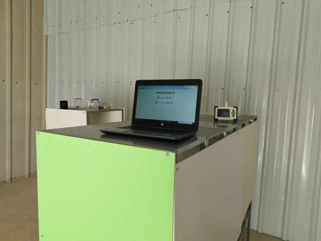התקנתי רשת אלחוטית במחסן כדי שהמכונה תוכל לשדר את הנתונים מהחיישנים אל מאגר מידע בענן, וכך אני אוכל לנטר את מצב החומר הסופח. ריכוז הפחמן דו חמצני במחסן הוא סביב 450-499 חלקים למיליון (הממוצע העולמי הוא 425 כרגע) , והמכונה מורידה את הריכוז לבין 0-100 חלקים למיליון.