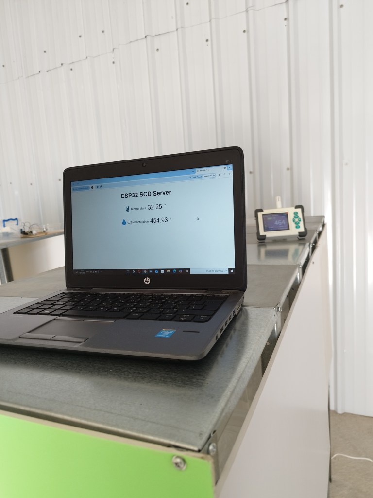 מיקרוקונטרולר ESP 32 עם חיישני לחות, טמפרטורה ורמת פחמן דו חמצני, שמעביר את הנתונים למאגר נתונים InfluxDB (על תשתית AWS) דרך WIFI .
